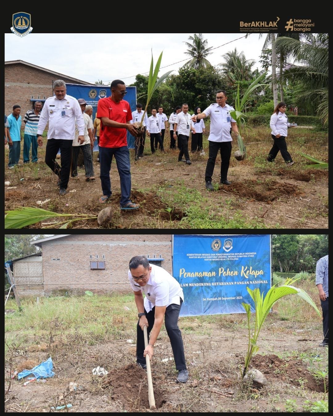Pada ketahanan pangan, Imigrasi Polonia memaksimalkan pemanfaatan lahan produktif milik warga dengan penanaman bibit pohon kelapa di Kecamatan Sei Rampah sebanyak 300 bibit pohon kelapa hibrida. Program ini tidak hanya mendukung kebijakan nasional, tetapi juga memperkuat solidaritas sosial di sekitar wilayah kerja.