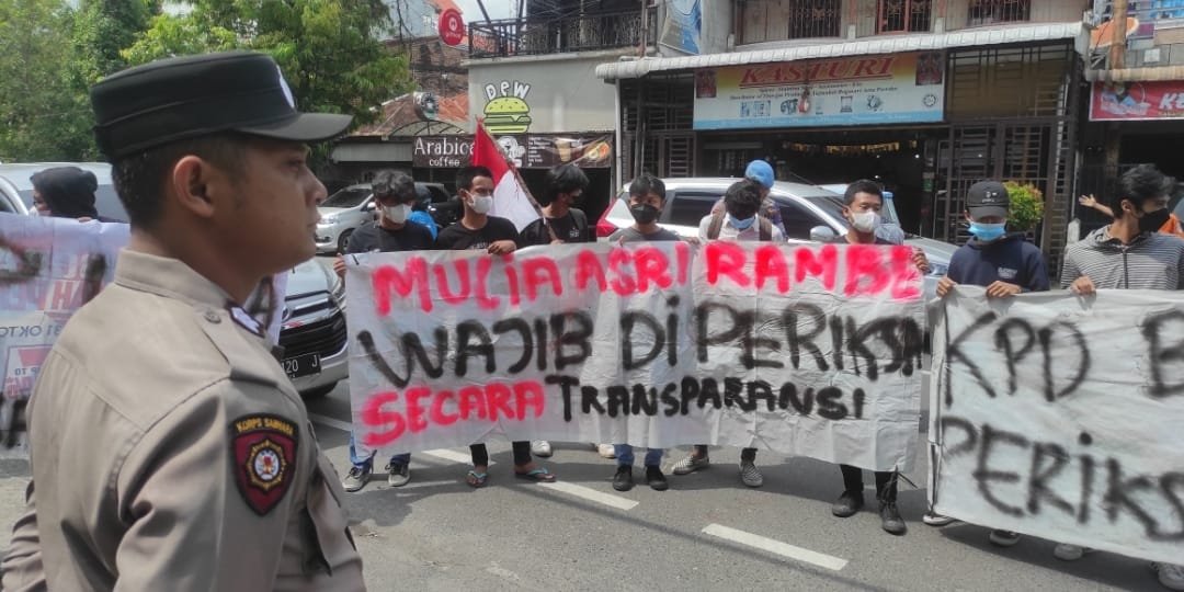Dengan membentangkan beberapa spanduk yang diantaranya bertuliskan “Mulia Asri Rambe wajib diperiksa secara transfaran”, pengunjuk rasa dalam pernyataan sikapnya juga menyampaikan kekecewaannya lantaran masih adanya oknum oknum pejabat negara yang menghalalkan segala cara untuk mencapai keinginan pribadinya.
