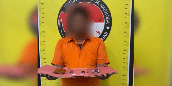 Di TKP, penggeledahan terhadap pelaku, petugas menemukan barang bukti berupa dua bungkus plastik klip transparan yang diduga berisi narkotika jenis sabu dengan berat bruto 1,40 gram. Selain itu, turut diamankan satu bungkus rokok surya warna cokelat, satu unit handphone merek Vivo 1915 warna hitam, serta dua buah mancis.