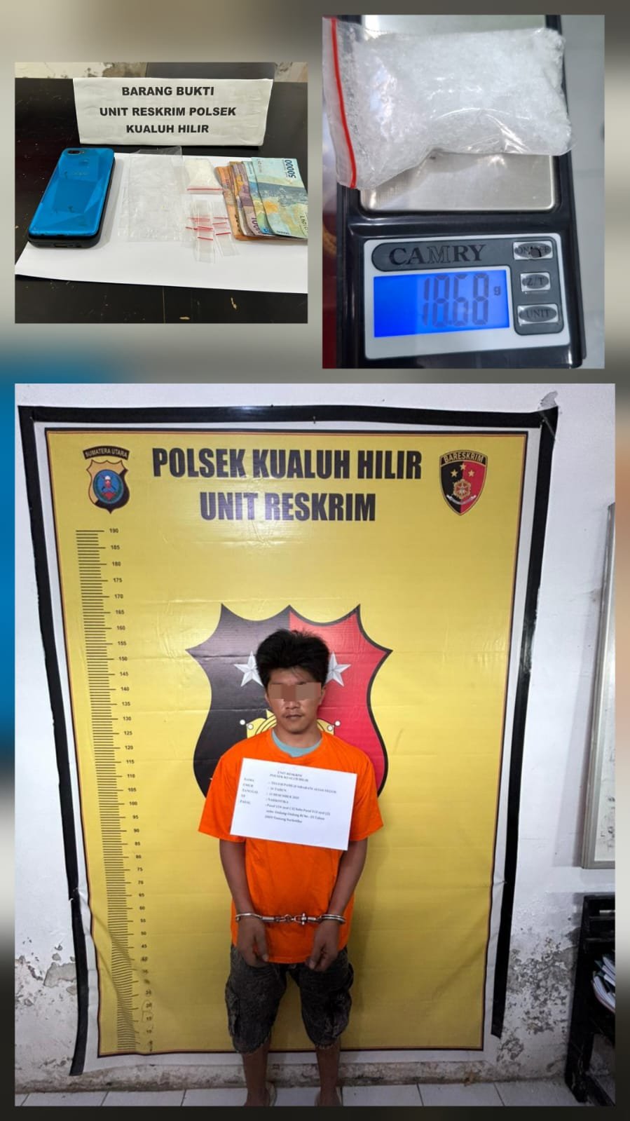 Lalu Team unit Reskrim Polsek Kualuh Hilir melakukan penyelidikan ke lokasi tersebut, setelah sampai di lokasi pukul 03.30 wib Team melakukan penyelidikan dan pengintaian selama lebih kurang 20 menit dan kemudian team opsnal polsek kualuh hilir melakukan penggerebekan di rumah tersangka dan dilakukan penangkapan oleh team kemudian team langsung mengamankan lelaki tersebut kemudian di lakukan penggeledahan di tempat tsb ditemukan di dalam tempat beras tersebut 1 (satu) bungkus plastik klip transparan besar yang di dalamnya berisikan paket Narkotika yang diduga jenis sabu- sabu dengan berat bruto 18,68 grram.