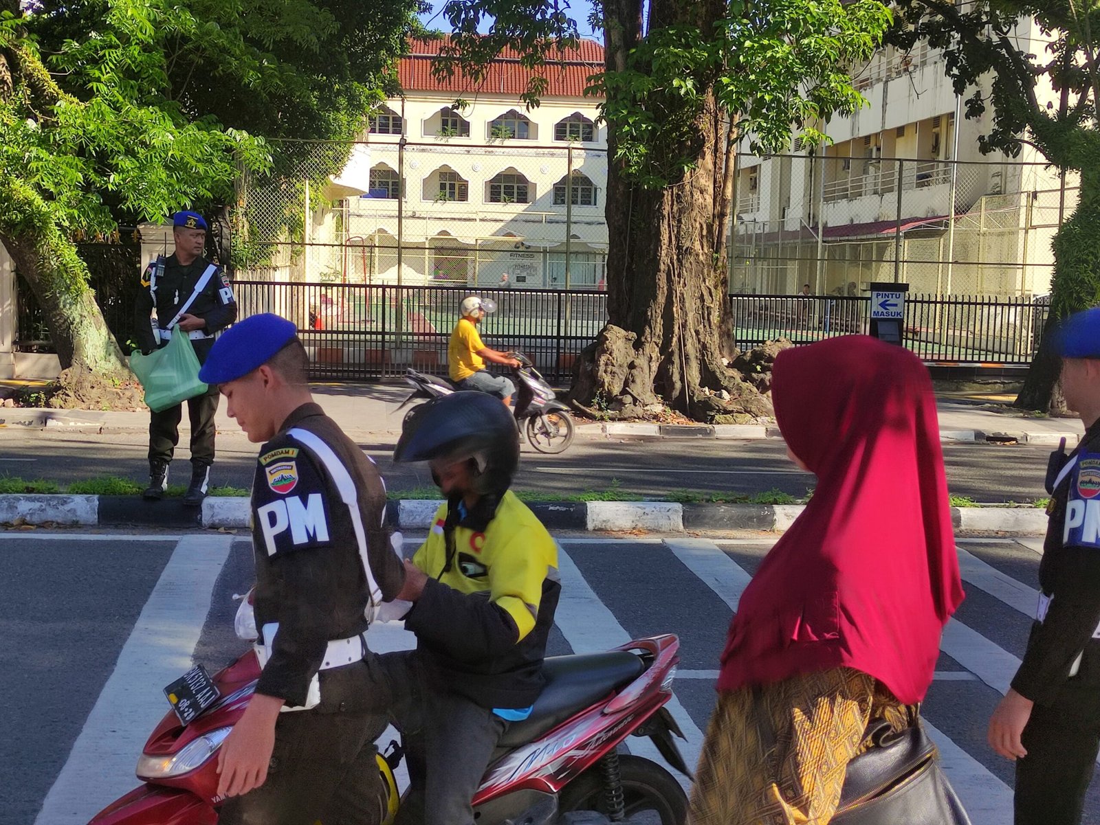 Seusai menggelar briefing di lapangan apel Markas Denpom 1/5 Medan, belasan personel yang sedang tugas dalam kantor langsung membagikan puluhan paket makanan untuk sarapan kepada warga yang melintas di seputaran Jalan Letjen Suprapto Medan.